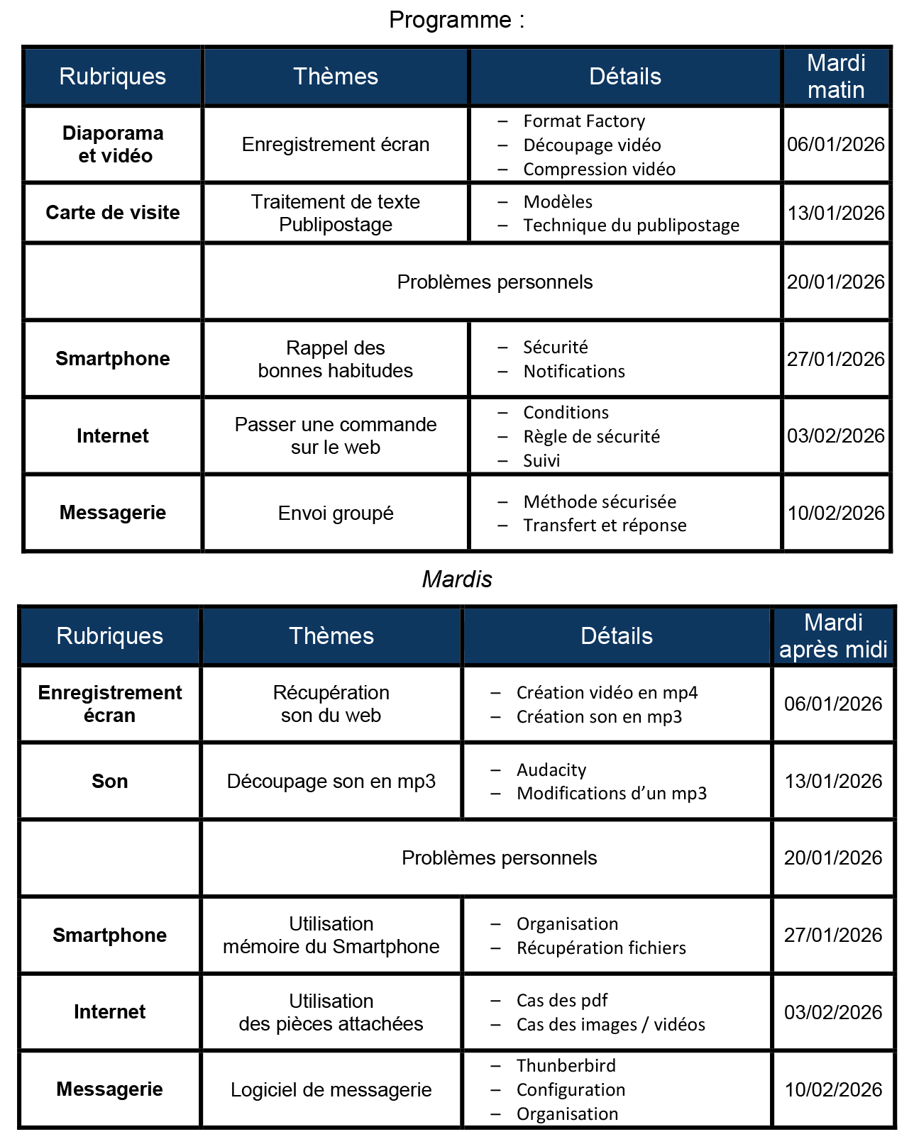 – mardi de 16h30 à 18h30